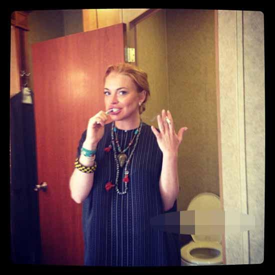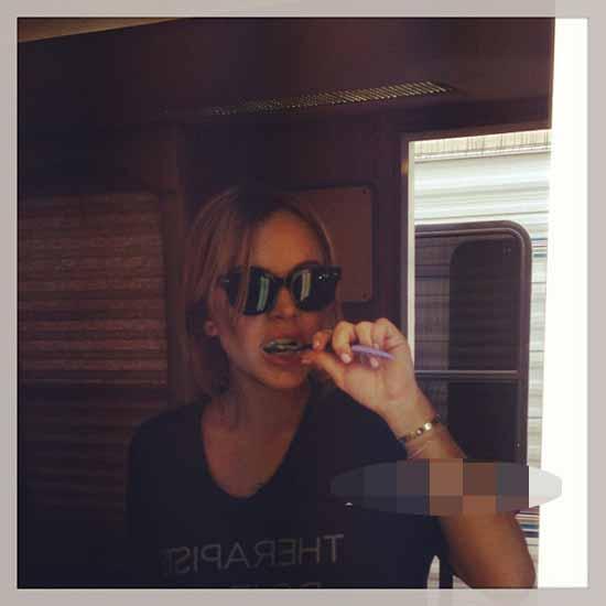 Lindsay là người nghiện thuốc khá nặng. Thậm chí đang đánh răng cô vẫn phì phèo điếu thuốc.