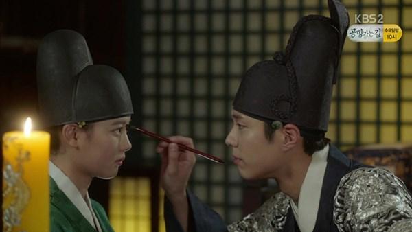 Lee Young dùng bút vẽ một chấm vào ấn đường của Ra On để đánh dấu rằng cô chính là của anh.