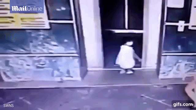 Bất ngờ, cánh cửa thang máy đột ngột đóng lại, chỉ còn một chút nữa là nó đã có thể kẹp cả cô bé vào trong. Chỉ trong tích tắc ấy, mẹ của bé gái đã kịp lao tới, dùng chân đá con ngã ngửa ra phía sau, tránh bị cánh cửa kẹp chặt và lôi đi.
