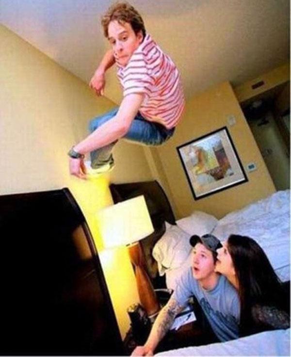 Anh ấy đang thể hiện kỹ năng 'không trọng lực'.
