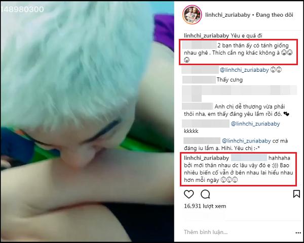 Ghi lại khoảnh khắc "cậu bạn tri kỷ" cắn vào tay mình, Linh Chi đính kèm thêm lời bài hát: "Bởi vì anh đang ghen ghen ghen ghen mà. Vì anh đang yêu thôi thôi thôi mà... Ông cụ non Lâm Vinh Hải trời hành. Clip quay lâu rồi giờ up tặng các angels của chị. Anh Hải sexy. Các angels của chị thấy sao?".