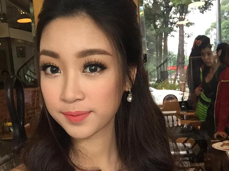 Hàng mi dài cộng thêm đôi lông mày to bản khiến Đỗ Mỹ Linh có phần hơi... đáng sợ.