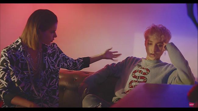 Ở một số cảnh quay, Sơn Tùng gây chú ý khi diện chiếc áo len mang hoa