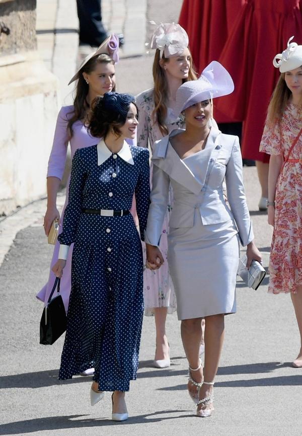 Hai nữ diễn viên Abigail Spencer và Priyanka Chopra xây dựng hình ảnh lịch lãm đầy tinh tế. Nếu như Abigail Spencer chọn diện mẫu váy dài với họa tiết chấm bi cổ điển thì Priyanka Chopralại diện bộ suit màu tím nhạt của Vivienne Westwood có phần cổ và tay áo hất vạt ấn tượng.