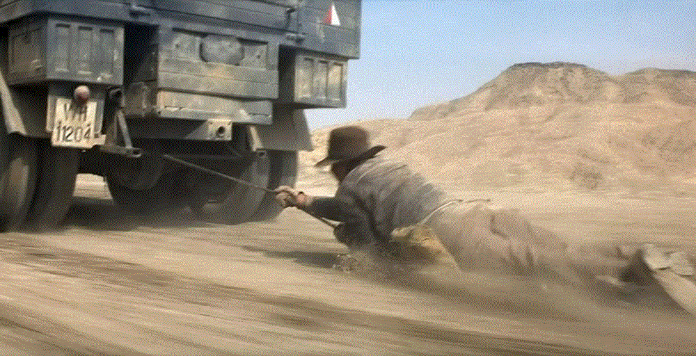 Cảnh quay Harrison cố gắng chạy thật nhanh khỏi hòn đá khổng hồ hay bị kéo lê phía sau chiếc xe tải của bọn phát xít khiến người hâm mộ không khỏi lo lắng.