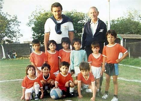 Messi 5 tuổi, đứng thứ 2 từ bên phải vào. Vì mắc chứng bệnh còi xương nên Messi luôn thấp bé hơn các bạn cùng trang lứa.
