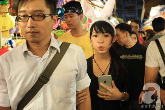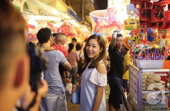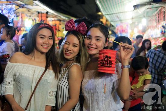 Không chỉ mua sắm tấp nập mà hình ảnh những chiếc lồng đèn nhiều màu sắc còn thu hút giới trẻ đến tham quan rất đông, nhất là các bạn nữ.