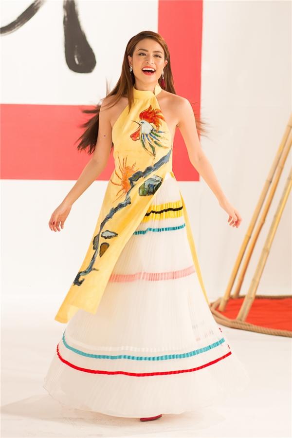 Thanh Hằng mang cả mùa Xuân lên những tà áo với màu sắc vui tươi, họa tiết hoa đặc trưng với kĩ thuật in chìm dập nổi hay thêu tay truyền thống. Giữa khung cảnh thơ mộng, nữ siêu mẫu khiến người xem càng nôn nao đón chờ Tết đến Xuân về.