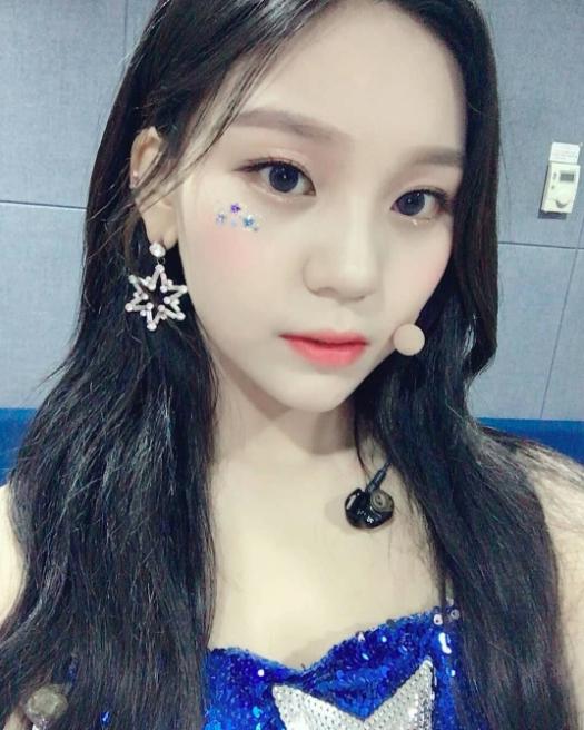 Cùng là kiểu dán nhũ lên phần dưới mắt nhưng Umji đã trở thành một cô công chúa thay vì một cô gái tròn xoe đáng yêu rồi.