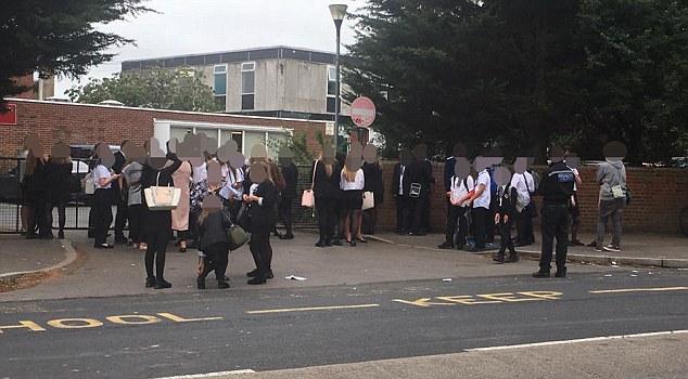 Ngay khi biết tin con mình bị đuổi về nhà vì không mặc đồng phục, một số cha mẹ đã quá kích động và tới đây biểu tình trước cổng trường, buộc cảnh sát phải vào cuộc.