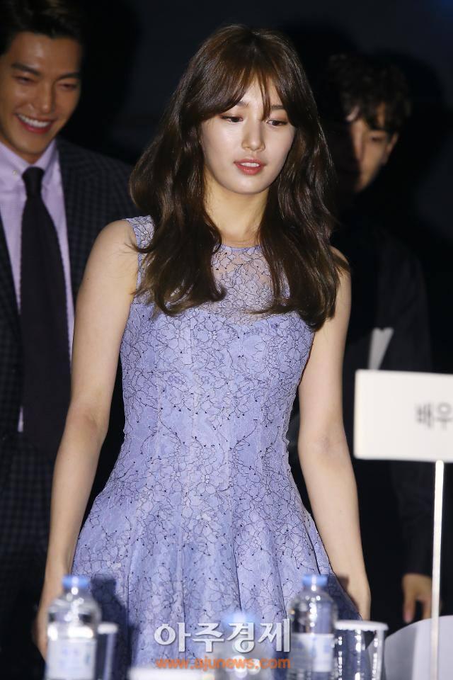 Ngay khi xuất hiện, Suzy đã thu hút toàn bộ sự chú ý với nhan sắc xinh đẹp, vô cùng ngây thơ của mình. Cô nàng diện chiếc váy xanh cùng đôi giày cùng màu, khoe vóc dáng thon gọn, có thể thấy người đẹp đã giảm khá nhiều cân khi hóa thân thành nàng PD No Eul của "Uncontrollably Fond".