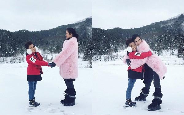 Cận cảnh 2 cô trò đang vui đùa tại thành phố đầy tuyết.
