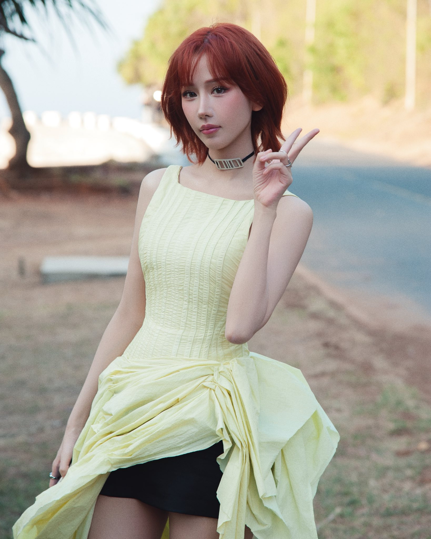 Đáng chú ý, trong dàn khách mời, Min xuất hiện với giao diện khiến netizen suýt không nhận ra. Nữ ca sĩ diện chiếc đầm cổ yếm màu be ngọt ngào khoe vóc dáng chuẩn không cần chỉnh. Tuy nhiên, gương mặt của Min trở thành tâm điểm bàn tán.