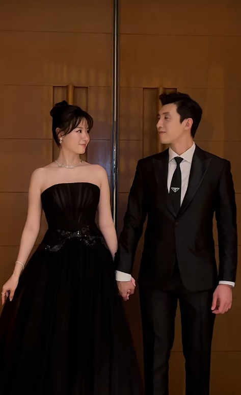 Trong khi nữ diễn viên chọn bộ váy dạ hội màu đen cổ điển, thiết kế cúp ngực ôm sát giúp tôn lên bờ vai thon và vóc dáng mảnh mai thì ông xã Midu lịch lãm không kém với bộ suit đen cổ điển. Chiếc cà vạt đen từ thương hiệu Prada tạo điểm nhấn nâng tầm phong cách cho vị thiếu gia sinh năm 1990.
