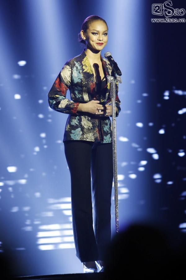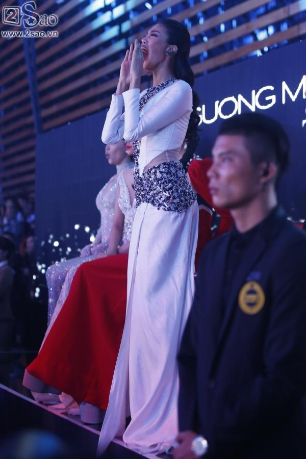 Chúng Huyền Thanh là thí sinh đầu tiên bước vào trả lời ứng xử. Nên cô khá lúng túng