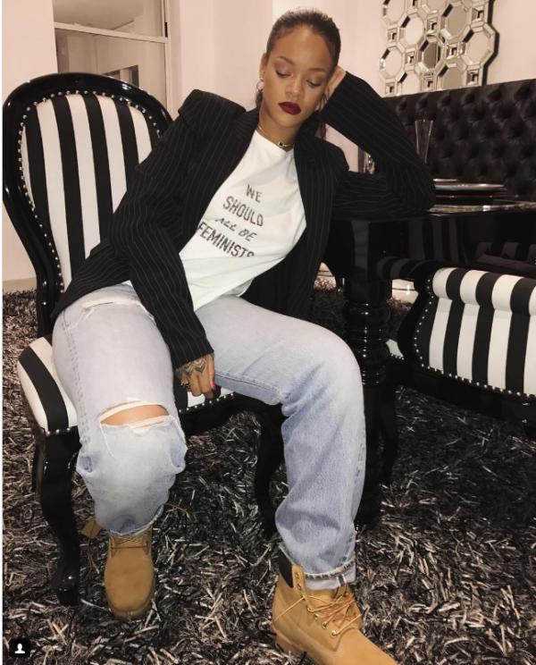 Rihanna chắc chắn không thể nào bỏ qua mẫu áo thun in slogan siêu hot này từ thương hiệu Dior.