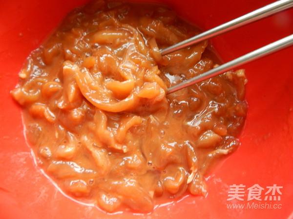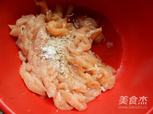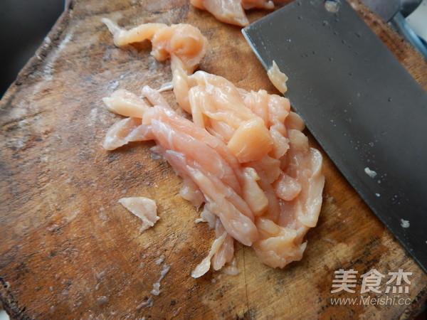 Bước 1: Gà thái thành miếng bản to dày rồi tiếp tục thái nhỏ hơn, dài