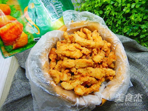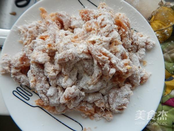 Bước 6: Trộn thịt với bột chiên gà cho ra đĩa cho khô để chuẩn bị chiên