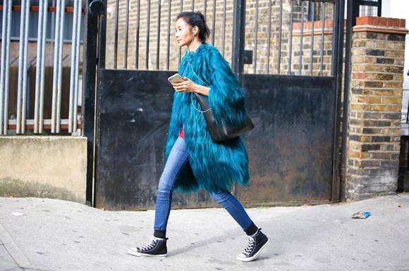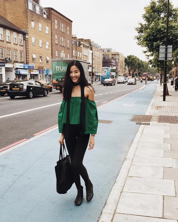 Sau khi rời khỏi một show diễn tại tuần lễ thời trang London mới đây, Hoàng Thùy đã lọt vào ống kính nhiếp ảnh gia street style quốc tế. Hình ảnh street style London Fashion Week của cô sau đó đã được đăng trên Vogue Italia. Trong bức hình trên tạp chí thời trang hàng đầu thế giơi cô đã gây ấn tượng mạnh khi pha trộn giữa phong cách trẻ trung của quần jean skinny jogger, giày converse cổ lửng với áo lông xanh thời thượng.
