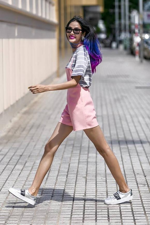 Đây không phải là lần đầu Hoàng Thủy gây ấn tượng phóng khoáng và thời thượng với streetstyle. Cô luôn biết cách mix đồ sao cho thật chất và luôn khác biệt.