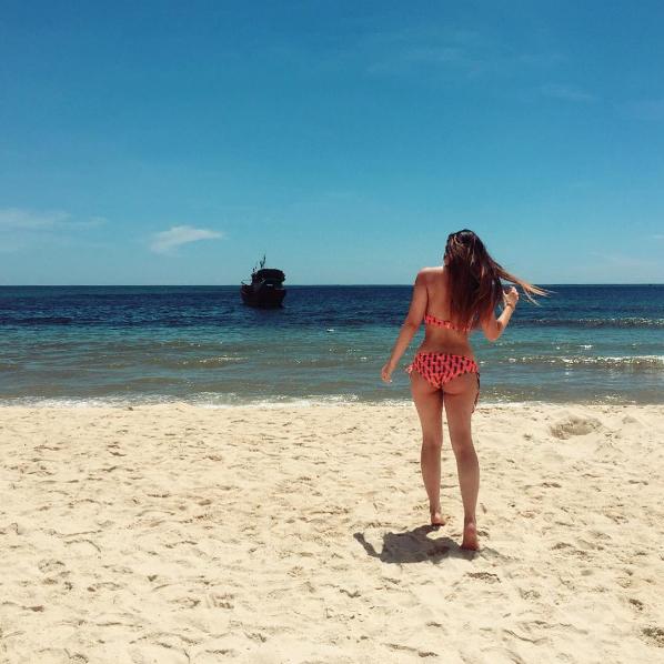 Chính điều này đã giúp Quỳnh Kool diện bikini rất thu hút. Trong những tấm hình được chụp từ phía sau lưng, người xem cũng đủ để "ố á" về đường cong của cô nàng này rồi.