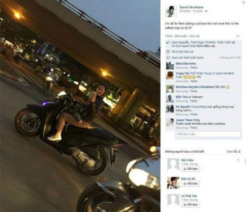 Vào tháng 11/2014, cầu thủ Beckham (Anh) cũng từng bày tỏ sự bất ngờ trước việc một người phụ nữ Việt đèo con ở tư thế nguy hiểm, người này cũng đưa điện thoại ra chụp ảnh anh.
