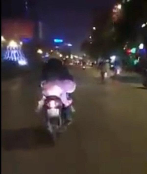 Clip có độ dài 14 giây ghi lại cảnh người phụ nữ điều khiển xe máy trên đường phố vào buổi tối và đèo con nhỏ phía sau đang ngủ gật nghiêng về một bên đang nhận được nhiều quan tâm của cư dân mạng. Dù đã được thắt dây an toàn nhưng bé vẫn ngả hẳn đầu sang 1 bên như sắp ngã đến nơi.