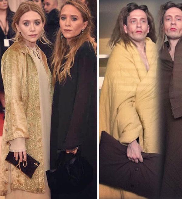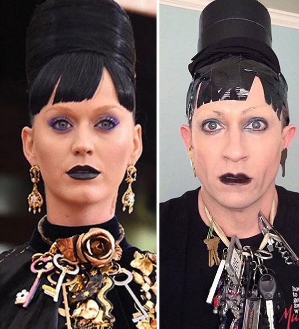 Lấy mì ống ghép thành tóc xoăn đề phòng khi đói. Bộ trang phục hàng hiệu vừa đẹp