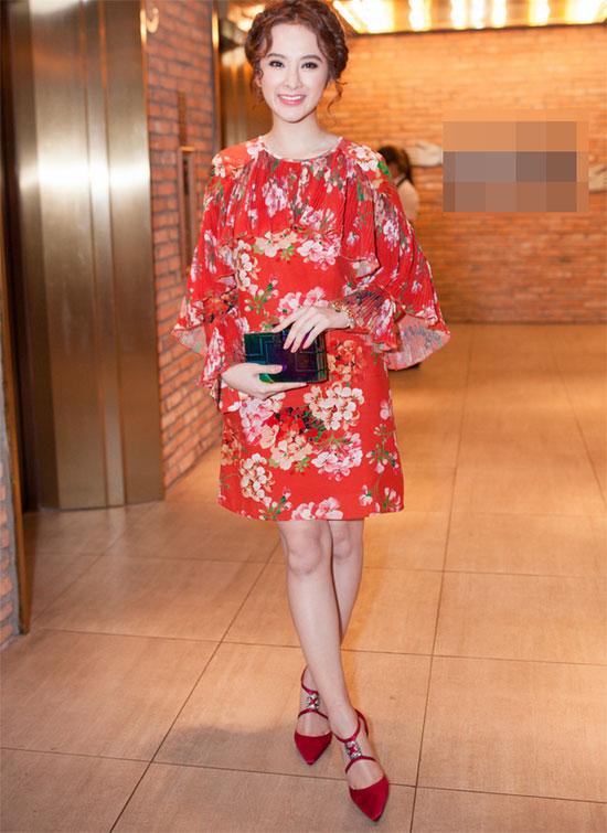 váy đỏ tươi tắn, chấm phá họa tiết hoa dây khiến cô đẹp rực rỡ hơn bao giờ hết.