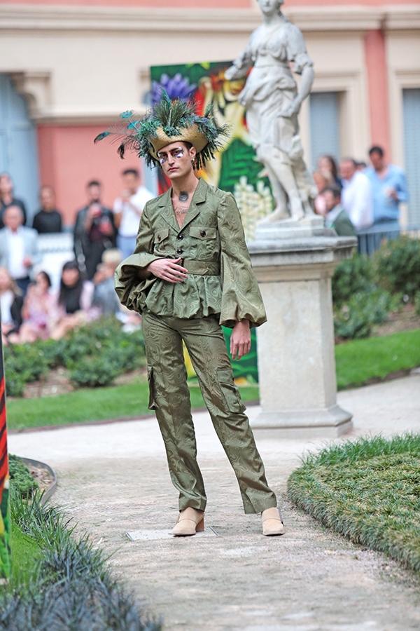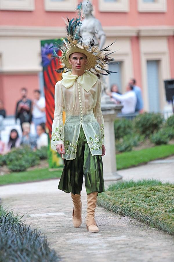 Các thiết kế đều có màu sắc, chất liệu, họa tiết mang đậm phong cách thời trang dành cho nữ giới. Thậm chí, Alejandro Gomez Palomo còn vận dụng cả chất liệu xuyên thấu mỏng manh vào trong các thiết kế được cho là cân đo theo vóc dáng của nam giới.