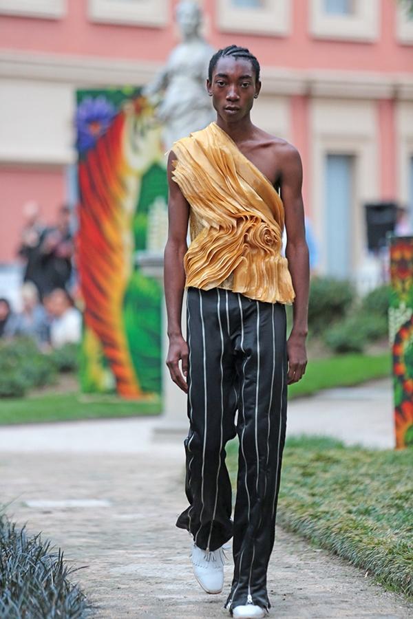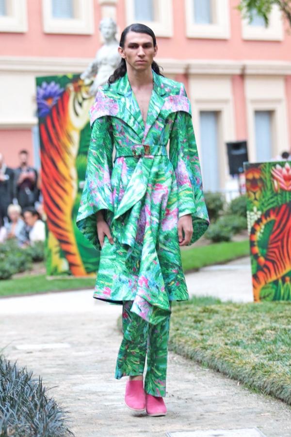 Thời trang dành cho nam giới dù không “rộn ràng” như dành cho nữ giới nhưng vẫn có sự thay đổi rõ nét trong những năm trở lại đây. Bên cạnh đó, sự phát triển mạnh mẽ của phong cách unisex đã rút ngắn khoảng cách giữa hai phái. Tuy nhiên, với bộ sưu tập ra đời vào tháng 9/2016 của nhà thiết kế Tây Ban Nha Alejandro Gomez Palomo dành cho đấng mày râu trong mùa mốt Xuân - Hè năm nay khiến người xem không khỏi trố mắt bởi nhuốm màu nữ tính mạnh mẽ.