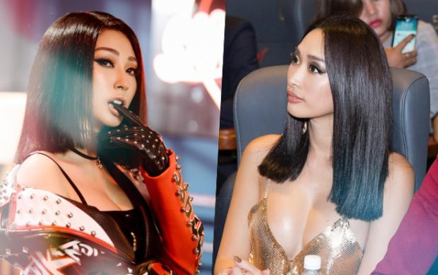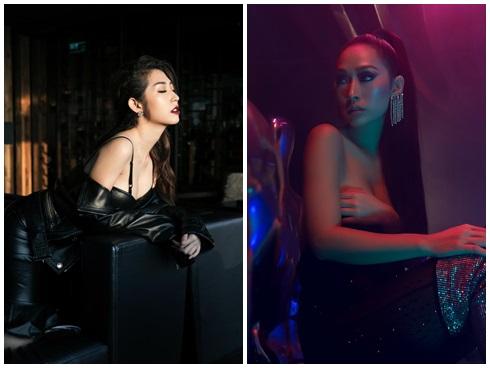 Khổng Tú Quỳnh - Quỳnh Thy giống nhau từ biểu cảm cho đến nét mặt khi chọn cùng kiểu tóc xoăn bồng bềnh buông xõa và diện trang phục gợi cảm.