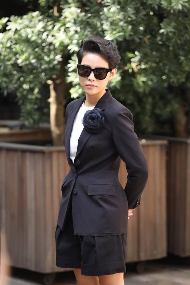 Hình ảnh mới nhất của Cát Tường khi tham dự một show thời trang. Nữ ca sĩ cá tính với vest đen thanh lịch và giầy hiệu Gucci.