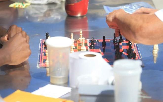 Phạm nhân chơi cờ vua trong thời gian sinh hoạt tập thể.