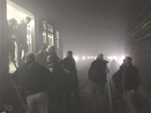 Nhà ga tàu điện ngầm Maalbeek mù mịt khói sau vụ nổ.