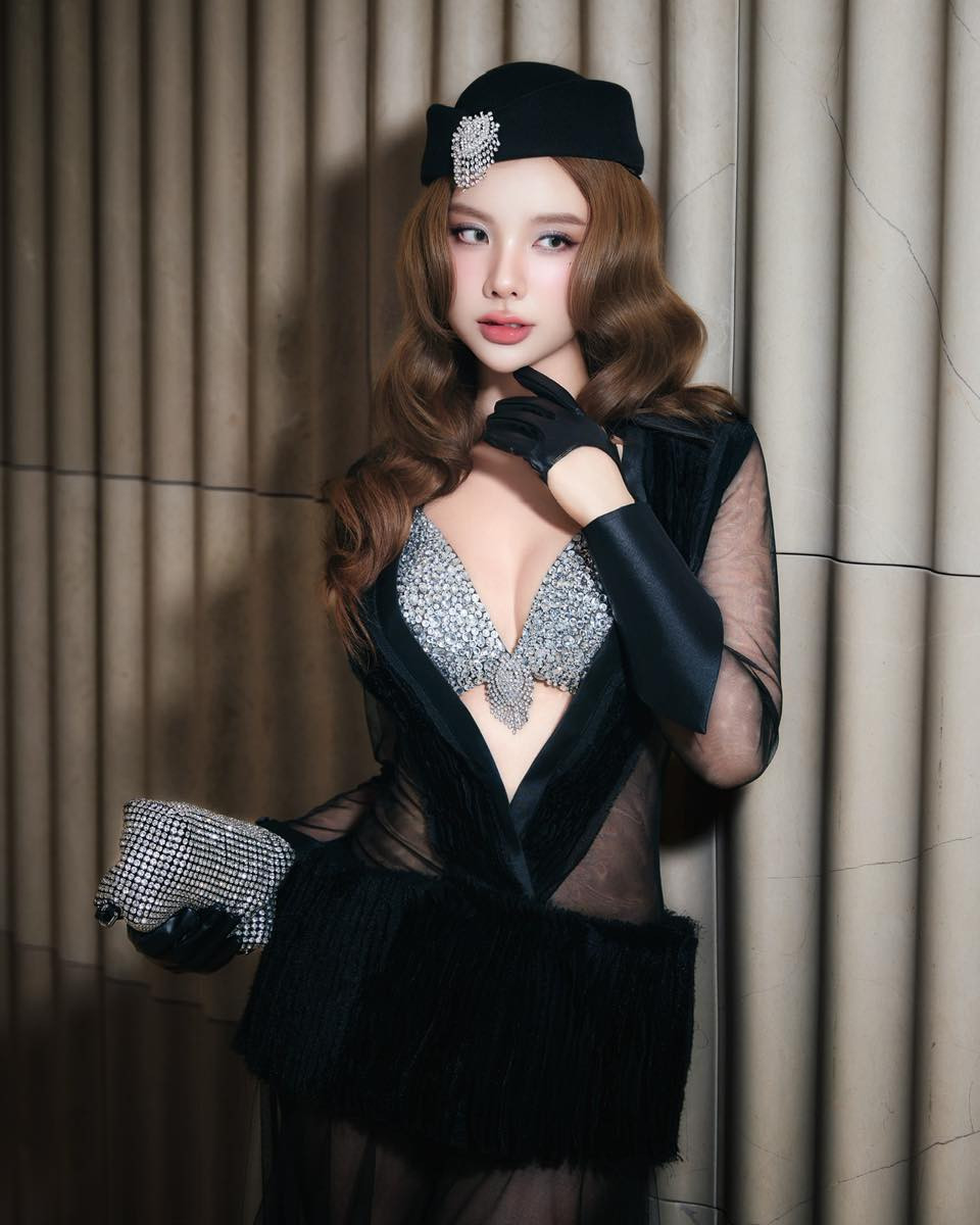 Trong khi đó, Hạnh Sino gợi cảm tuyệt đối với thiết kế xuyên thấu phá cách với phấn áo đính đá chẳng khác nào nội y. Mẹ bỉm còn phô diễn triệt để đôi chân thon dài trứ danh.