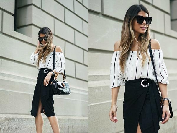 Cô nàng công sở có thể học cách mix match thú vị với áo blazer và chân váy xếp li kẻ sọc như Lana Del Rey.