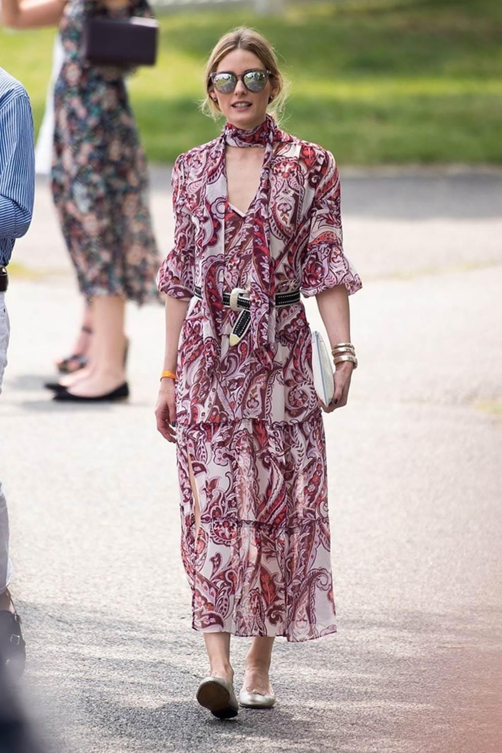 Đầm tầng và chiếc khăn đồng điệu về chất liệu và màu sắc giúp tín đồ thời trang nổi tiếng trở