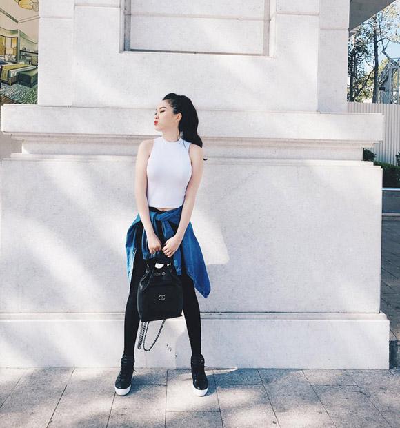 Bảo Thy trở nên dễ thương trong set đồ khi đơn giản chọn chi mình chiếc áo ba lỗ