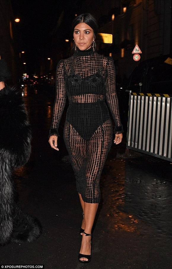 Ngay sau khi xuất hiện tại Tuần lễ thời trang Paris vào tối thứ sáu (30/9) chị em Kim Kardashian đã nhanh chóng thu hút sự chú ý của giới truyền thông. Ngôi sao truyền hình thực tế mặc áo trễ vai mix với quần bó sát và áo khoác lông để lộ vòng eo thọn gọn. Trong khi đó, Kourtney Kardashian lại "vượt mặt" em gái về độ gợi cảm khi mặc áo ren xuyên thấu để lộ nội y.