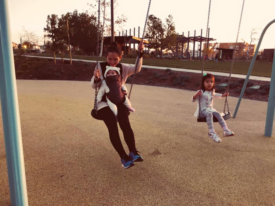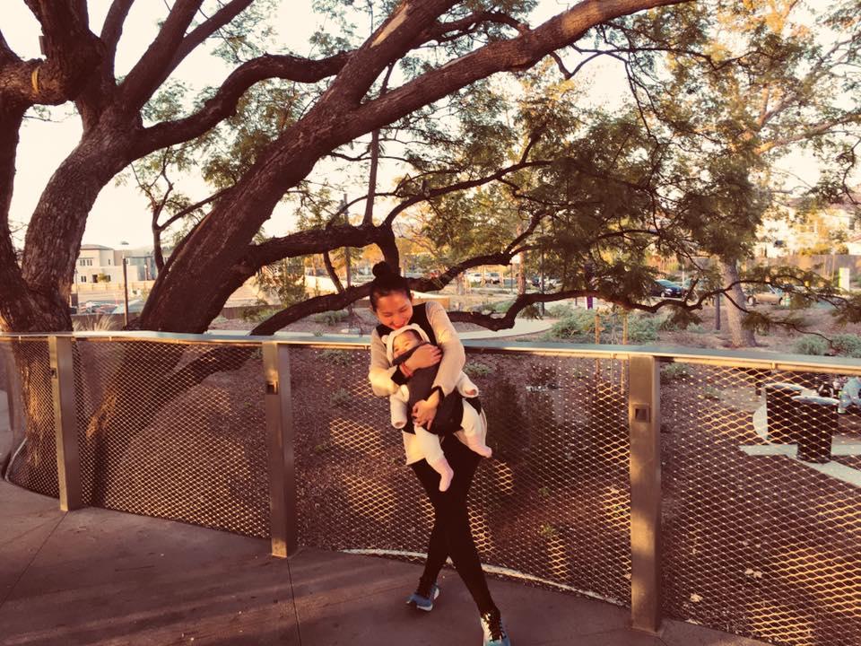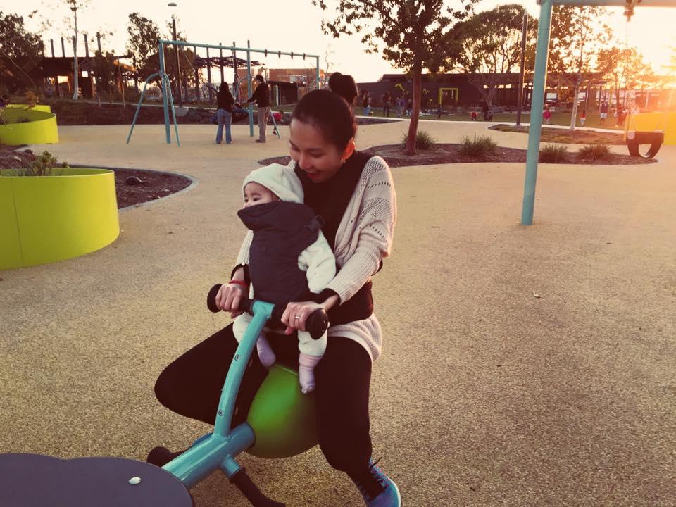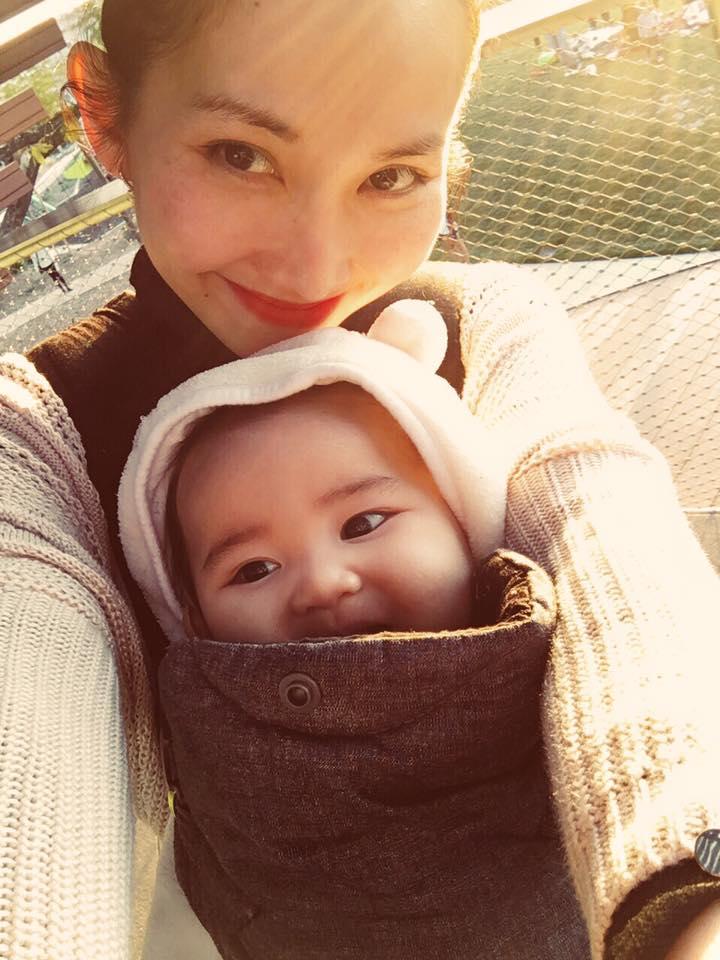 cũng ngồi trong lòng mẹ khám phá thế giới bên ngoài.