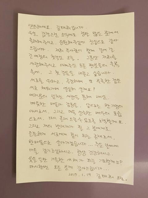 Chiều tối hôm trước, Bi Rain đã dành cho người vợ sắp cưới của mình những lời yêu thương ngọt ngào thì tới hôm nay, ngày quan trọng của cuộc đời, cô dâu mới Kim Tae Hee cũng dành những lời nói thật xúc động cho người chồng của mình. Bên cạnh đó cô cũng không quên cảm ơn người hâm mộ đã ủng hộ vợ chồng cô.