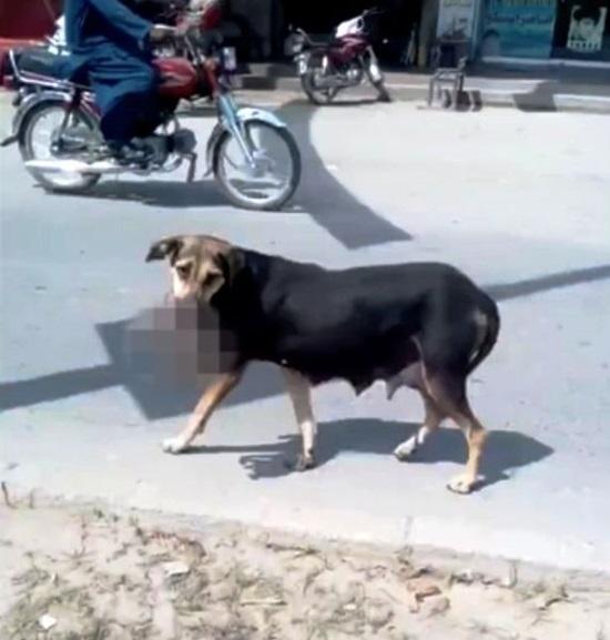 Đoạn video về sự việc kinh hoàng trên đã được một người đi đường tại Pakistan ghi lại bằng điện thoại và chia sẻ lên trang Facebook cá nhân của mình. Theo đó, rất đông người dân có mặt tại hiện trường đã vô cùng sợ hãi khi nhìn thấy một con chó hoang đang cắp theo thứ gì đó giống như trẻ sơ sinh trong miệng.