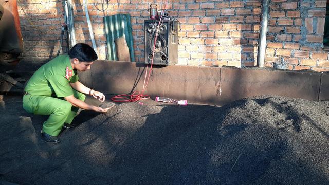Tại hiện trường, lực lượng chức năng phát hiện có hàng chục tấn cà phê bẩn cùng đất, đá được tập kết ở trong kho, trong đó có 12 tấn cà phê đã được nhuộm đen bằng pin, 2 chậu chứa 35 kg pin được đập vụn, 1 xô chứa lõi pin, 1 xô chứa nước màu đen và nắp pin... dùng để nhuộm đen cà phê.