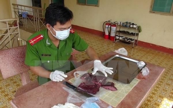 Trước đó, để xử lý triệt để việc buôn bán thực phẩm bẩn, chỉ trong vòng 3 ngày từ 27 đến 29/4, Phòng Cảnh sát môi trường, Công an tỉnh Bình Phước đã bất ngờ kiểm tra nhiều cơ sở kinh doanh thực phẩm bẩn, phát hiện thu giữ nhiều thực phẩm bẩn, bốc mùi hôi thối với số lượng lên đến gần 2 tấn. Nguy hiểm hơn, lực lượng chức năng còn phát hiện nhiều can hóa chất dùng để tẩm ướp biến thịt bò thối thành thịt bò tươi.