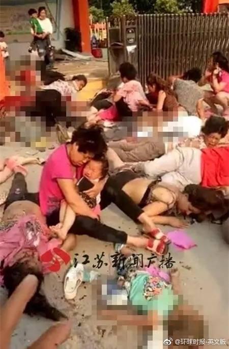 Theo SCMP, những bức ảnh và video về vụ nổ được đăng tải trên truyền thông Trung Quốc cho thấy ít nhất hàng chục người bị ảnh hưởng bởi vụ nổ nằm la liệt bên ngoài cổng trường mẫu giáo.