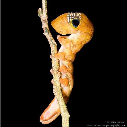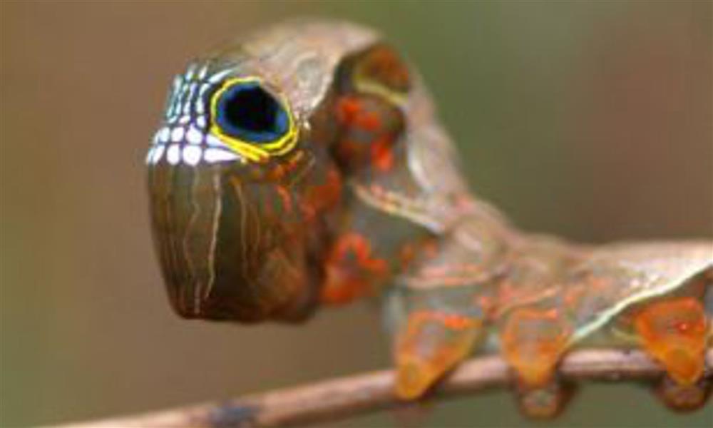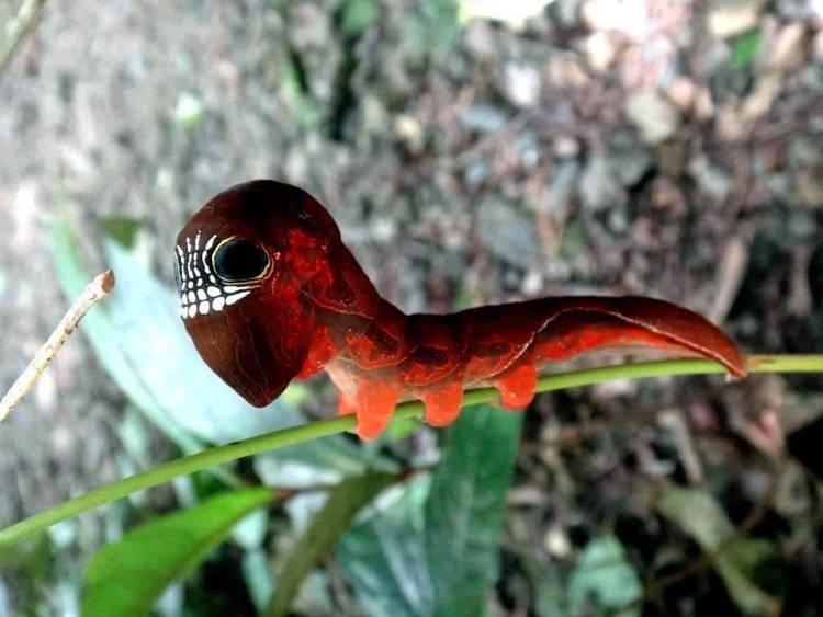 Sâu bướm của loài bướm đêm màu hồng quý hiếm có cơ chế bảo vệ rất kỳ lạ. Khi bị tấn công, nó đột nhiên ưỡn lưng để lộ một đôi mắt to, giống hình đầu lâu vô cùng đáng sợ.