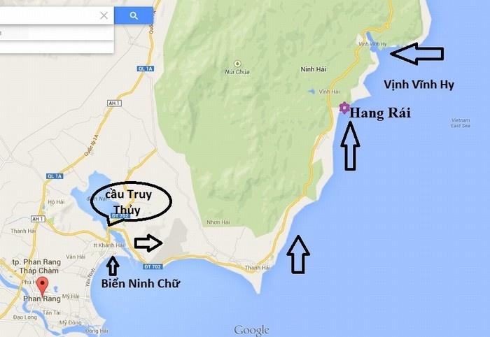 Từ Phan Rang bạn đi theo đường biển Ninh Chữ đến cầu Trị Thủy thì rẽ phải và đi tiếp dọc quốc lộ 702 đi khoảng 35km là đến Hang Rái ở thôn Thái An – Vĩnh Hải – Vĩnh Hy.