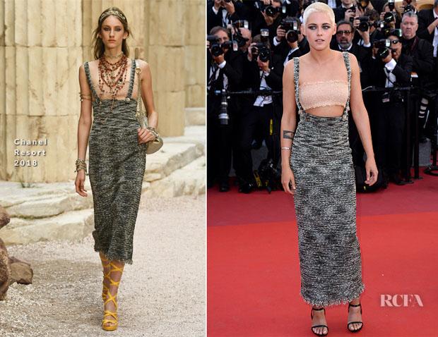 Không váy áo lộng lẫy, nữ diễn viên sinh năm 1990 mặc nguyên thiết kế trong bộ sưu tập mới nhất của nhà mốt Chanel. Trang điểm tone màu mắt khói cho phù hợp với mái tóc và set đồ.
