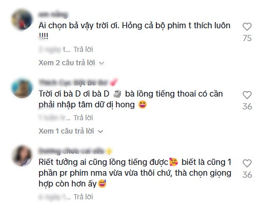Không những thế, biểu cảm khi lồng tiếng của Hoa hậu hoàn vũ được nhận xét hơi "ố dề", quá đà. Phía dưới clip, nhiều người để lại bình luận tranh cãi: "Trời ơi bà Duyên ơi, bà lồng tiếng có cần nhập tâm vậy không?", "Ai chọn bà vậy trời, hỏng cả bộ phim tôi thích luôn", "Riết tưởng ai cũng lồng tiếng được"...